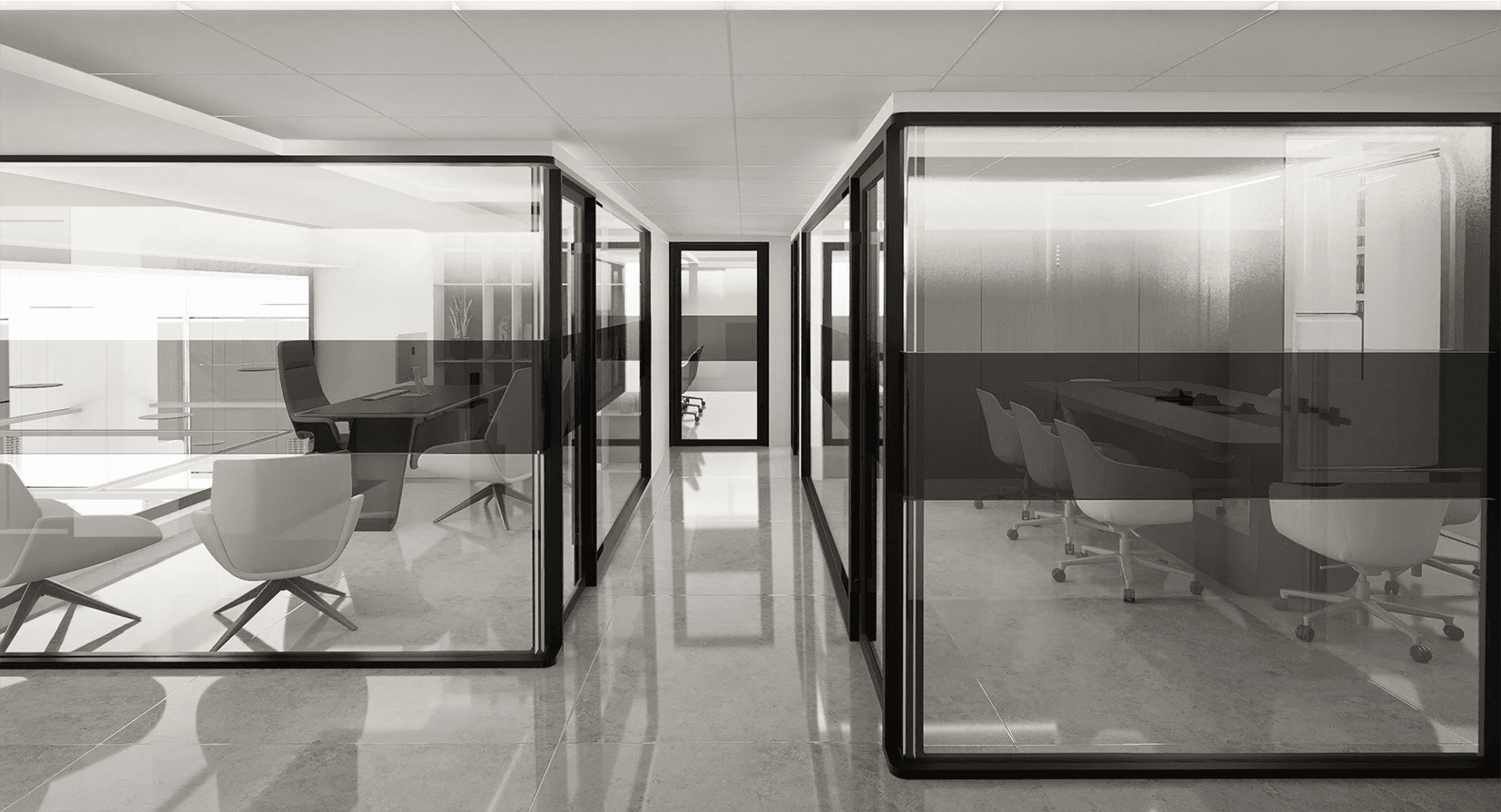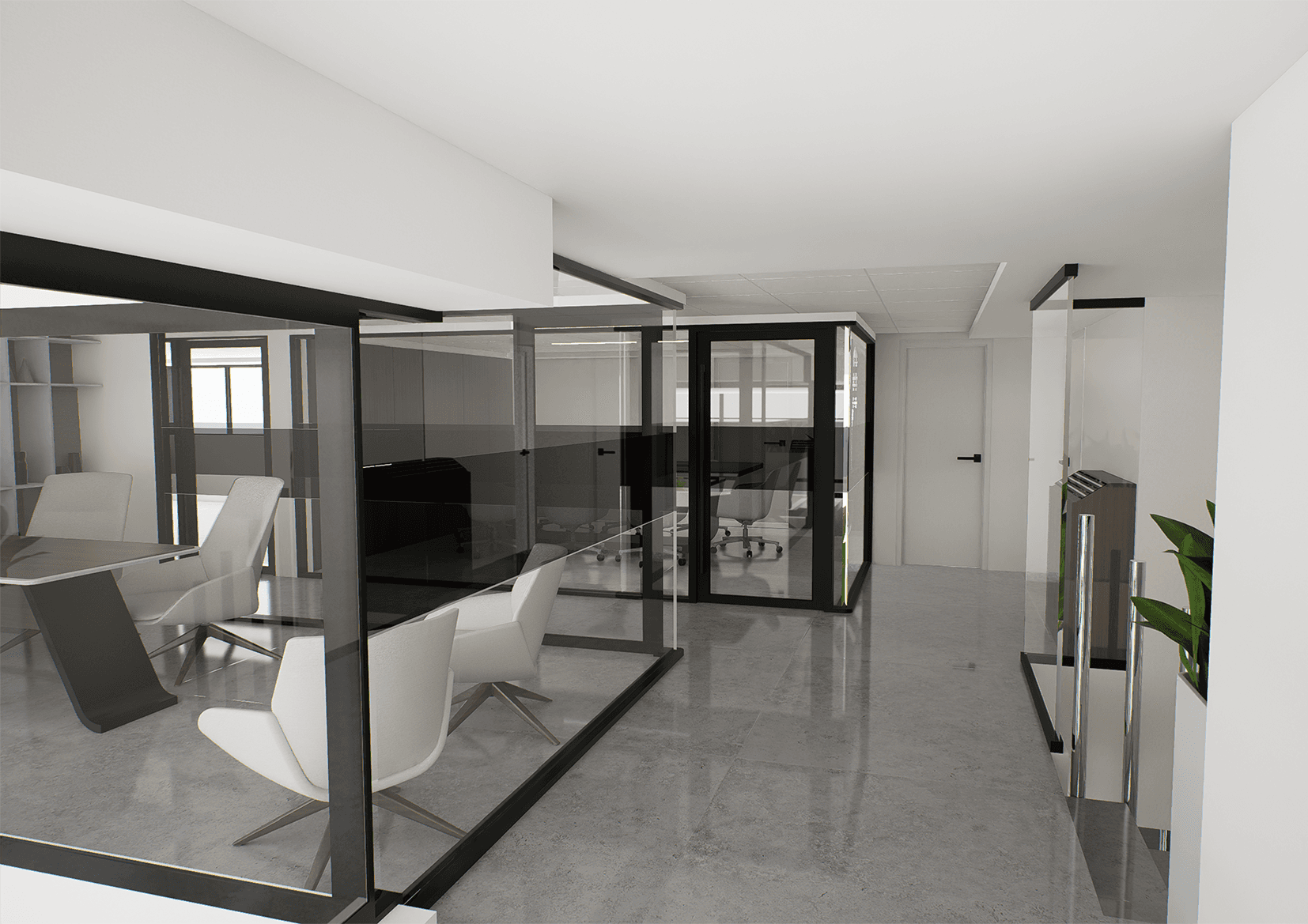 Βehind the collaboration hub lies the quiet zone which is isolated from the rest office spaces ensuring privacy. This is ideal for professionals like engineers who need high levels of concentration. Right next to the quiet zone, the flexible zone is intended for short work tasks or short work breaks. In the same space, soundproof booths are integrated to meet the needs of modern work practices especially during the post pandemic time.