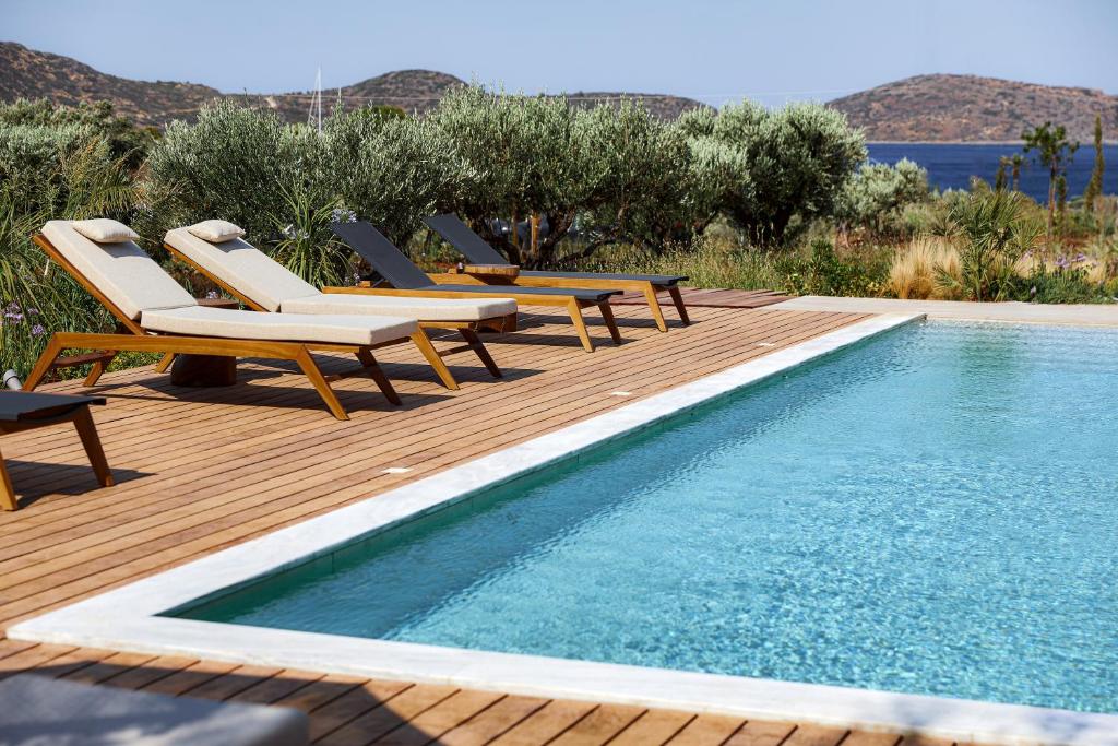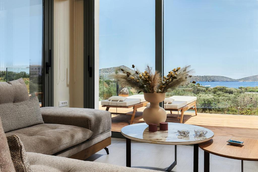Discover a harmonious Cretan villa that offers serene luxury and direct access to the beautiful coastal resort of Elounda.